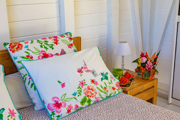 Notre bungalow est construit sur une architecture ancienne typiquement guadeloupéenne. Ainsi, la chambre à coucher est séparée par la terrasse du reste du logement comprenant la cuisine et la salle d'eau indépendantes.
