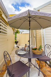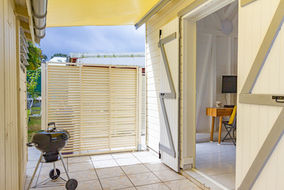Ce patio de 15 m2 est le point central de ce bungalow typiquement créole. Son extérieur équipé vous promet des moments de détente au coeur du jardin tropical.